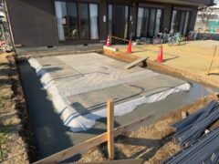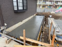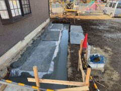 弊社では何処の基礎工事でも立上りとの打ち継ぎ部には止水シールを施します。