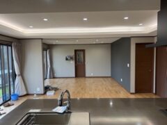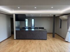 LDKはアイランドキッチンをセットして、天井には間接照明を設置しています。