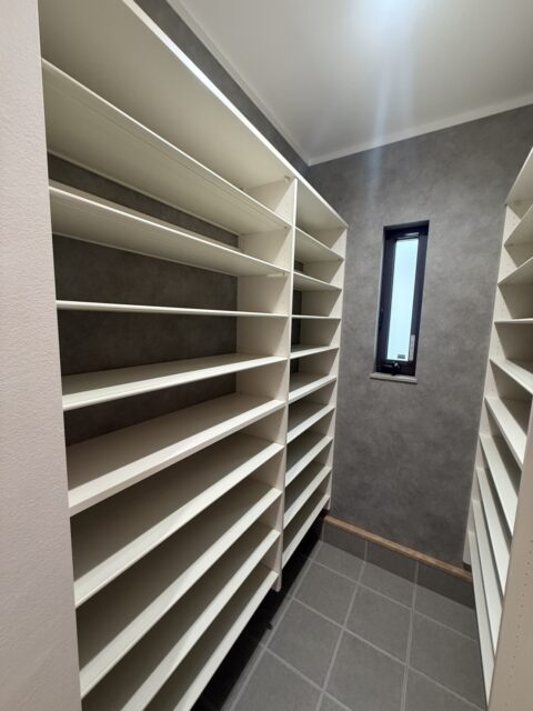 キッチン脇には収納力抜群のパントリーを作成しました。
